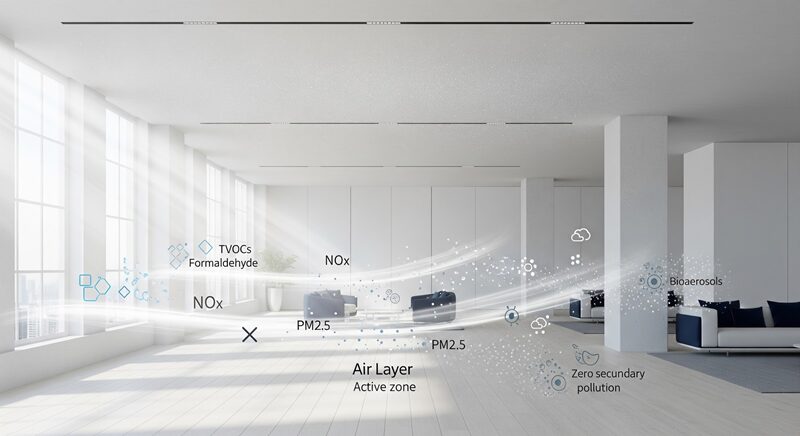 Wykorzystując długoterminową aktywność powierzchniową, system czerpie z naturalnego światła i przepływu powietrza, aby działać w sposób ciągły bez konieczności modyfikacji wentylacji, zapewniając niskie zużycie energii oraz brak wtórnych zanieczyszczeń.